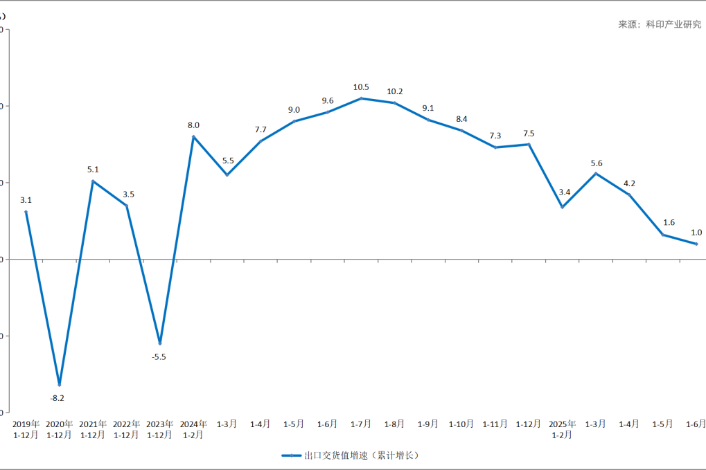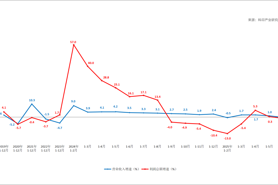 2025年1-6月,印刷业规模以上企业实现利润总额,同比下降1.0%,增速较上月也下降了1.3个百分点,今年以来二次进入负增长区间。